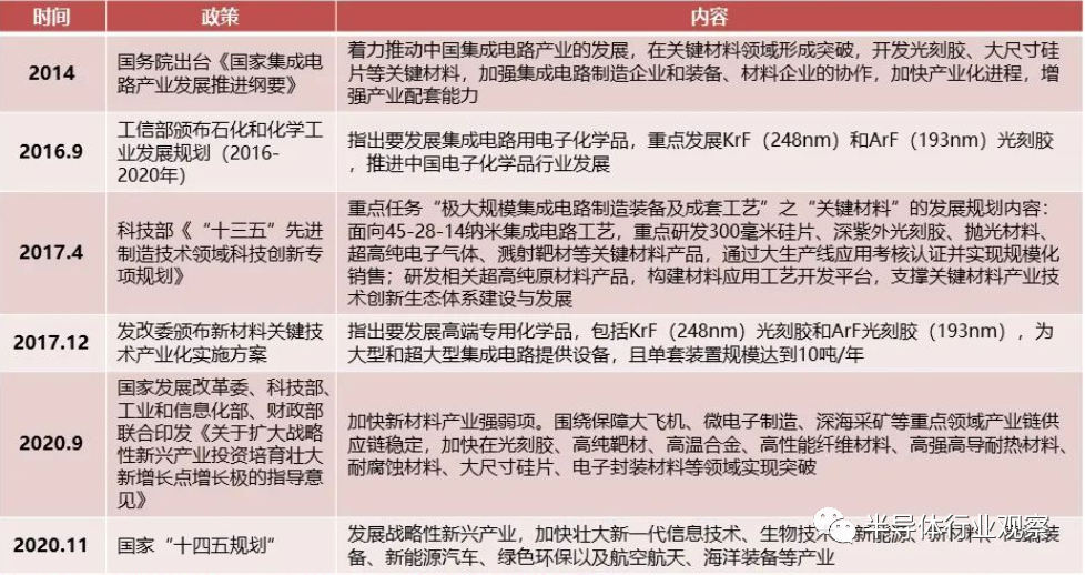 大基金之外,近年來國家還推出了一系列政策來促進半導體材料行業(yè)的發(fā)展。